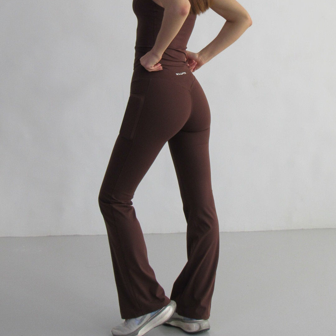 A sculpting take on the classic flare. The Contour Flare Leggings feature a curve-enhancing scrunched back, functional pockets, and a distinctive front waistband design that flatters from every angle. Finished with a flared leg for an elongated, feminine silhouette.